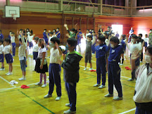 ト運動に変わる新しい運動をみんなに紹介してくれました。運動委員が新しい運動を実演