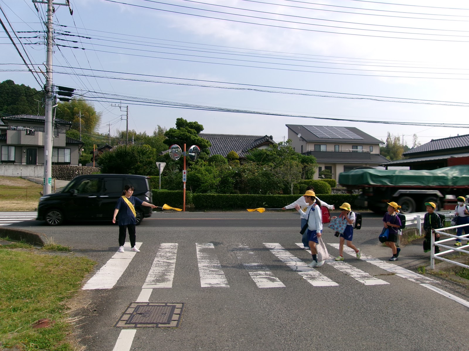 月曜日の朝、保護者の方々が横断歩道等に