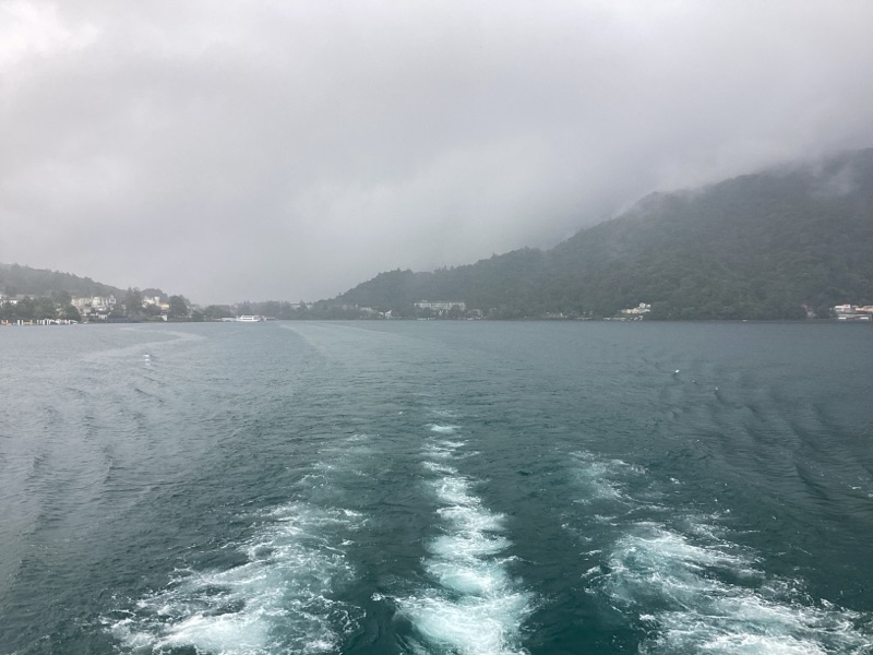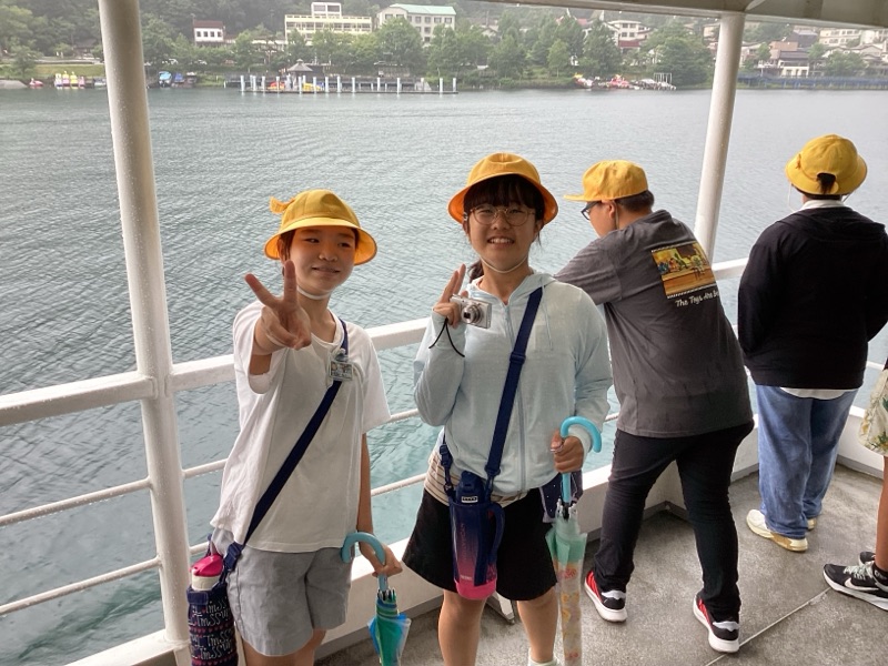 中禅寺湖で遊覧船に乗りました。3階建の船ですが、1階は「中二の子」たちで貸し切りのようでした。